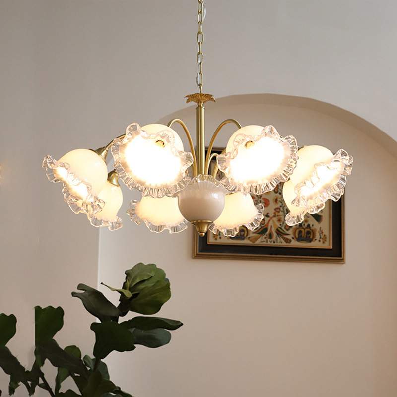 法式轻奢奶白玻璃吊灯 美式田园客厅餐厅卧室全铜灯具新品