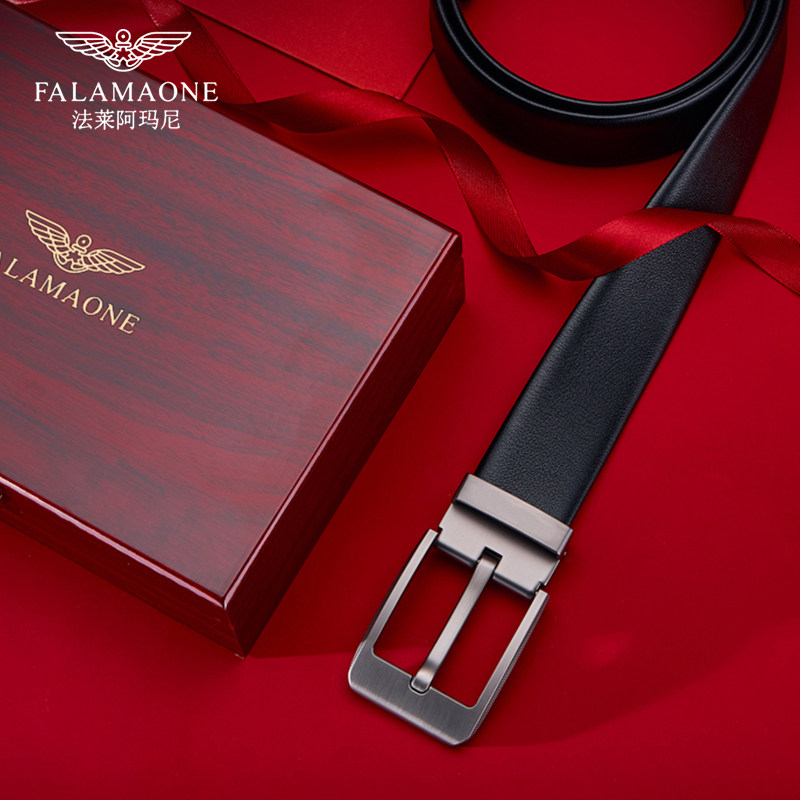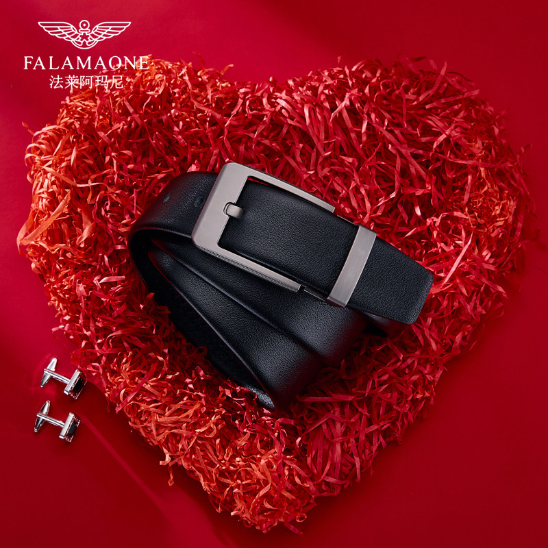 高档品牌法莱阿玛尼男士针扣皮带送男友礼物腰带真皮男裤带年轻人