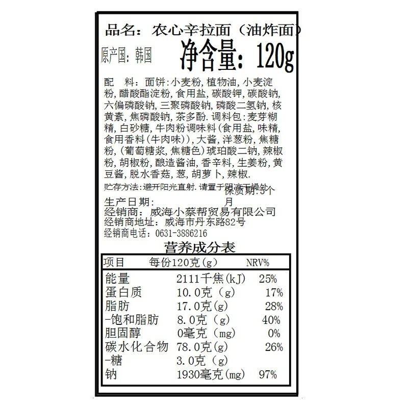 韩国进口农心辛拉面懒人速食
