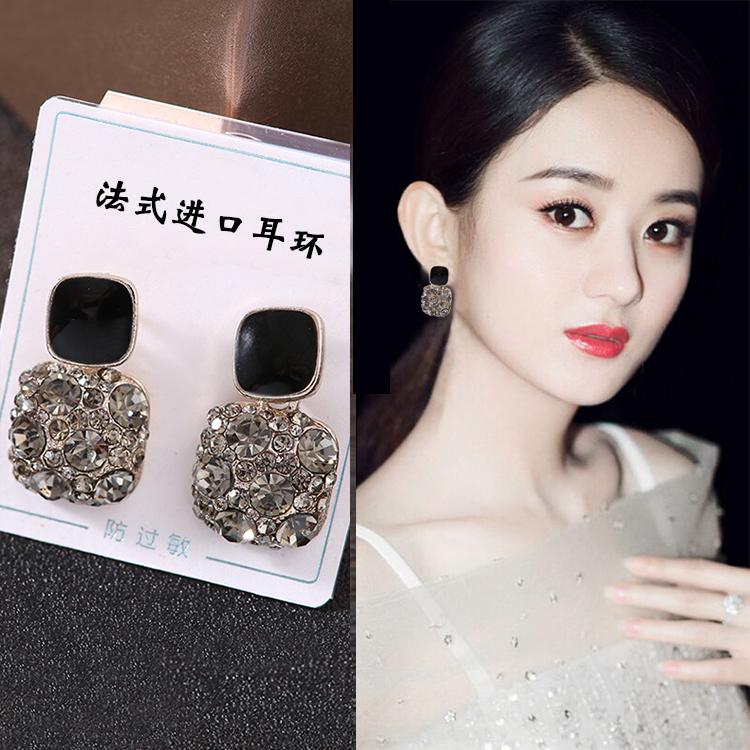冷淡风黑色耳钉秋冬新款潮气质女
