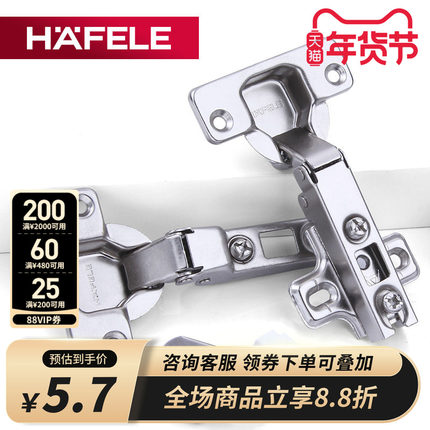 德国海福乐HAFELE反弹铰链弹簧橱柜门柜子衣柜反弹合页免拉手铰链