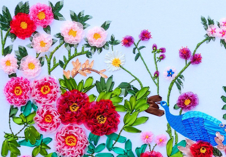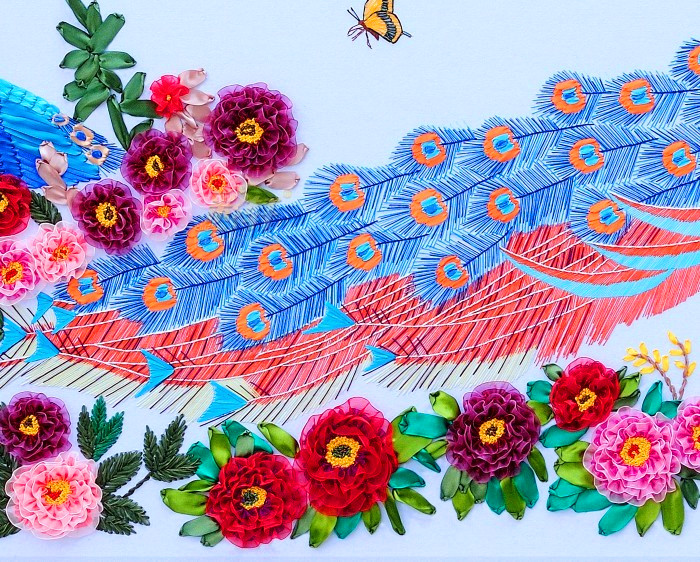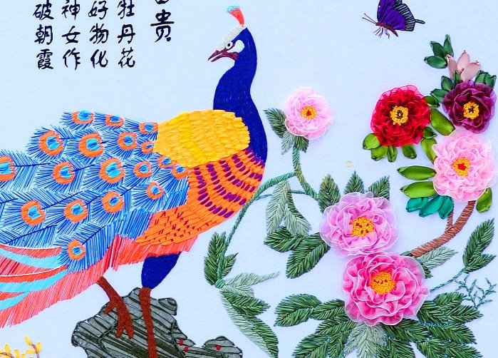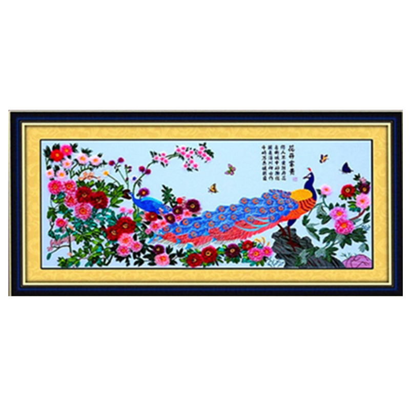 新款立体印花手工丝带绣客厅十字绣挂画大幅孔雀牡丹花开富贵2米4