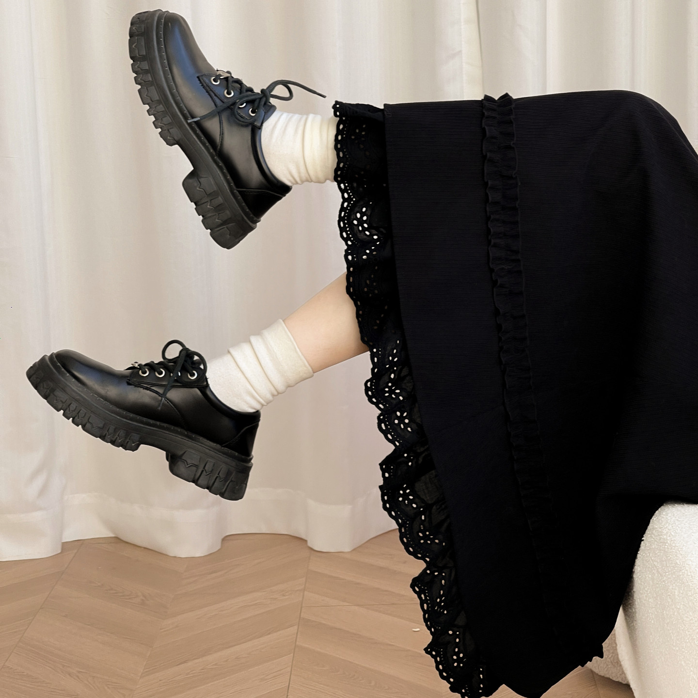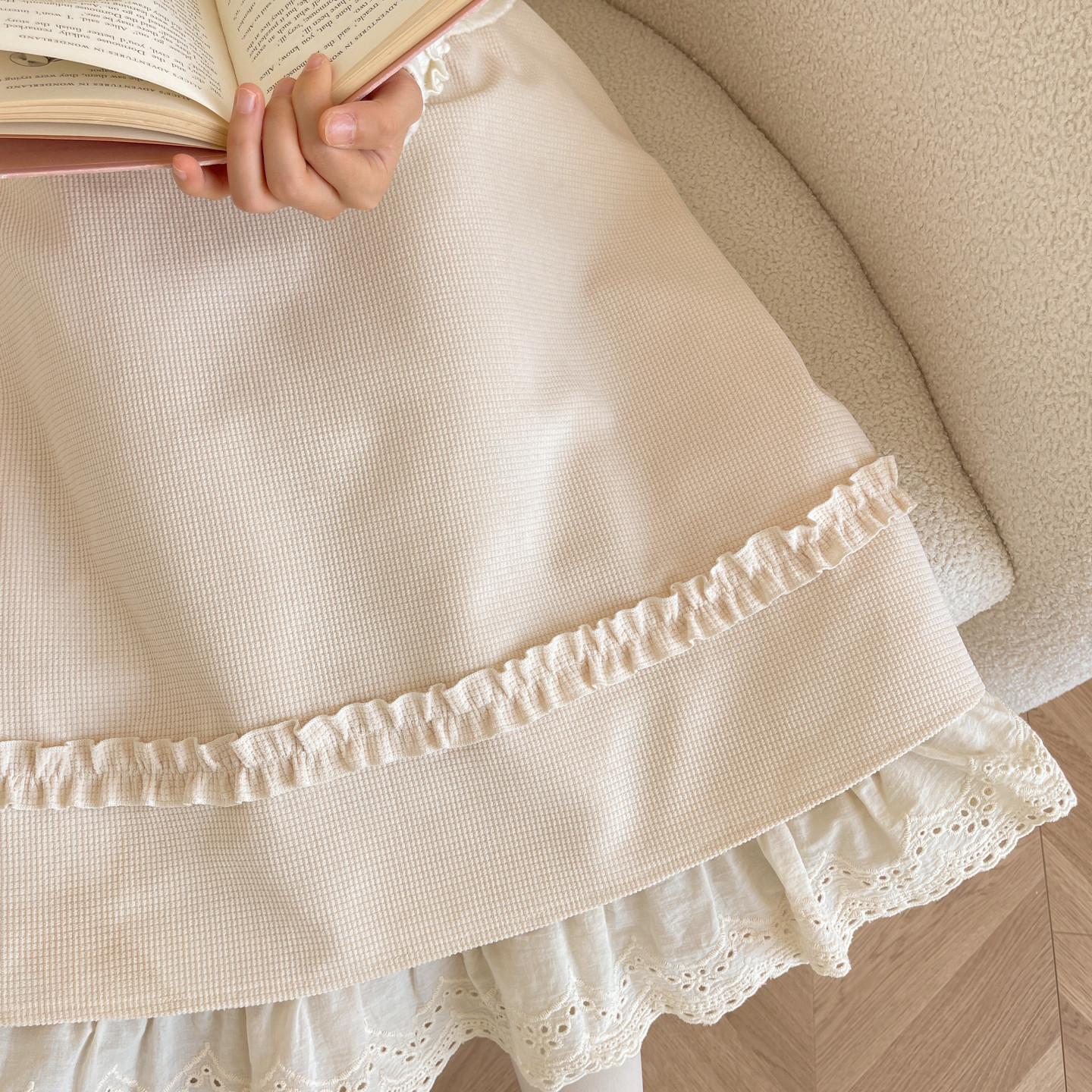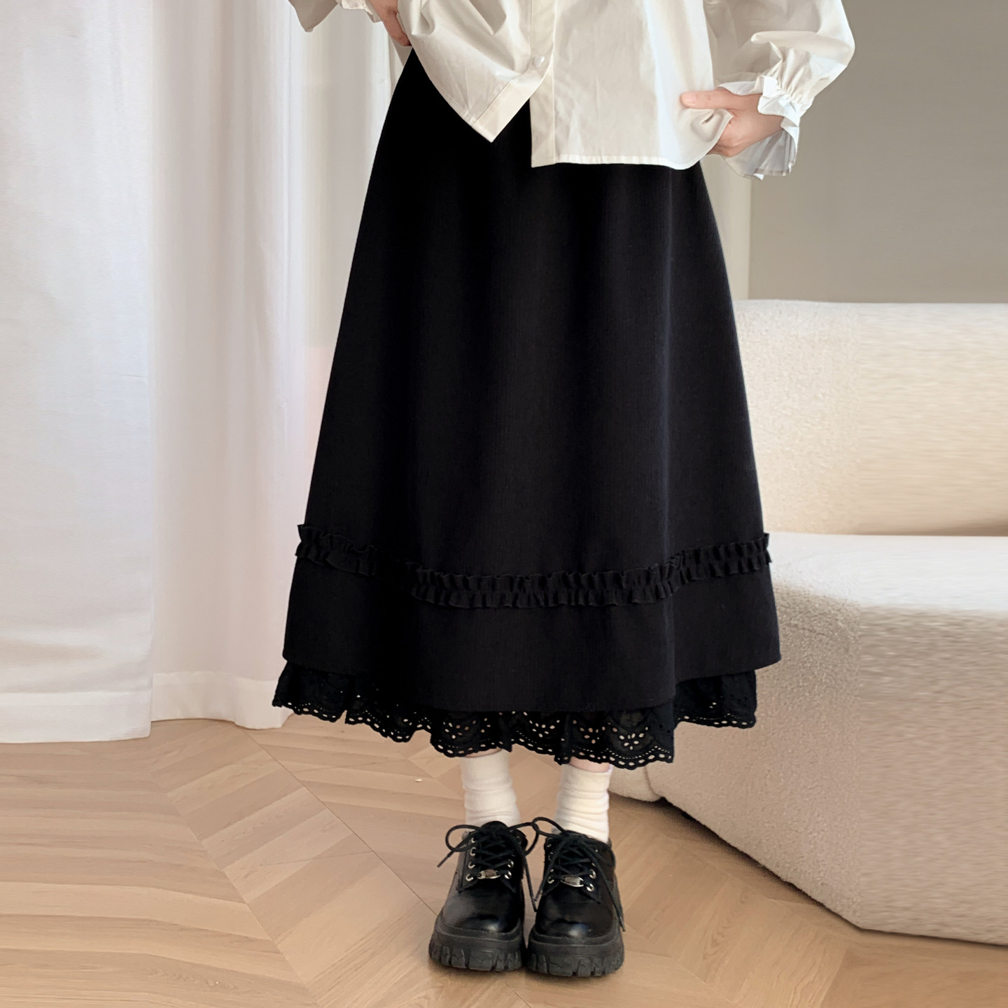 森女部落学院风高腰A字半身裙女2026新款冬季蕾丝拼接设计感长裙