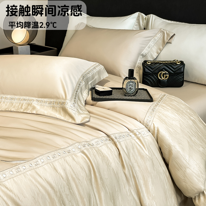 轻奢夏季冰丝四件套高级感丝滑裸睡真丝凉感被套天丝床单床上用品