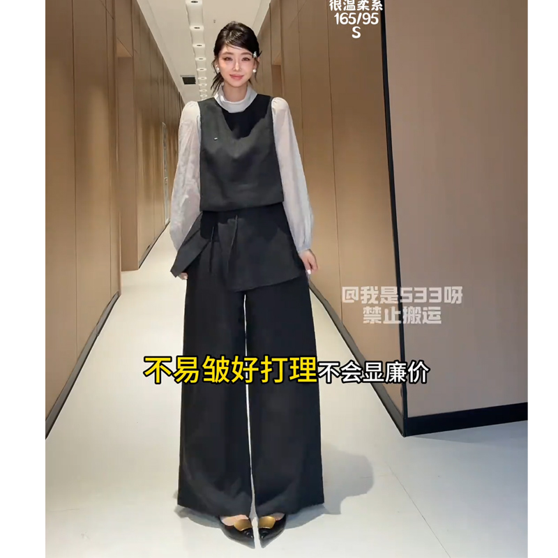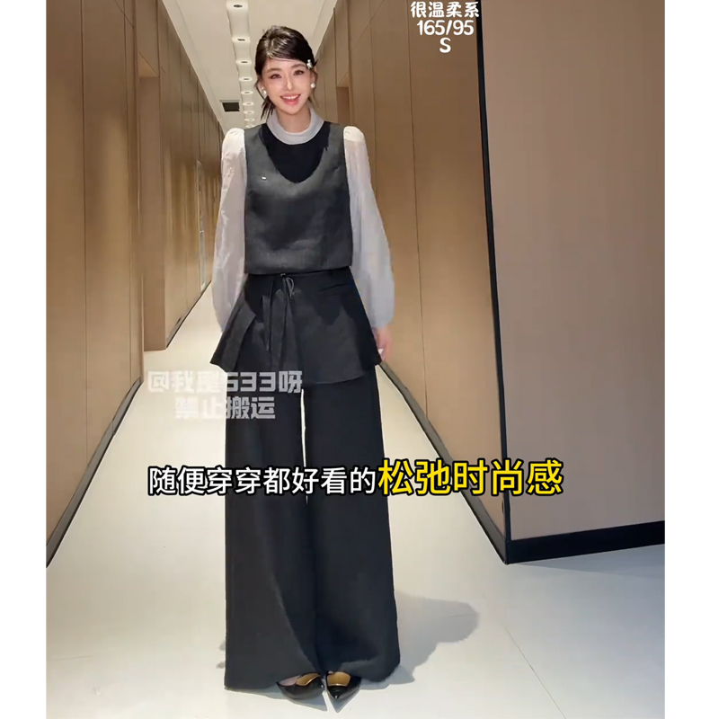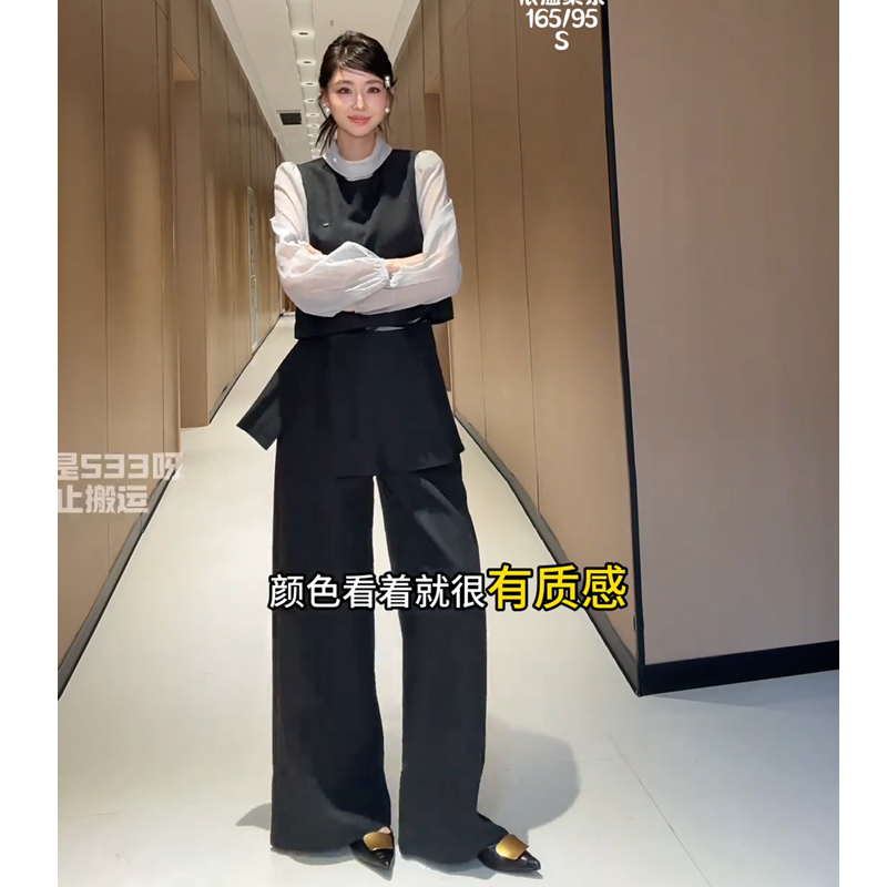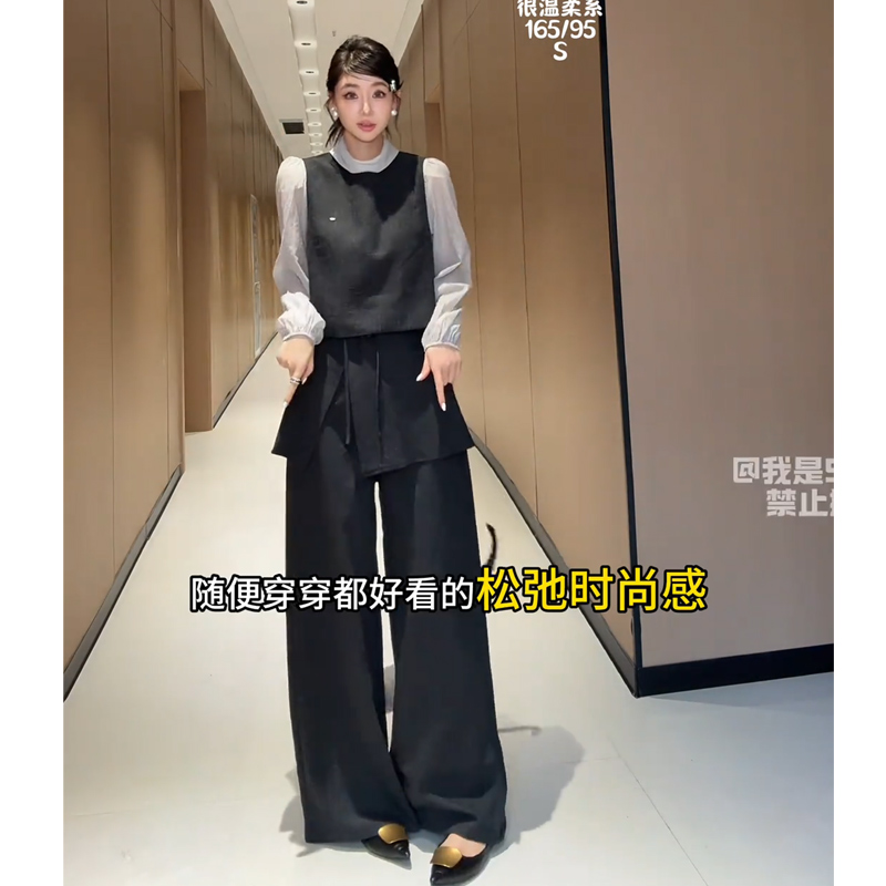 Wannvy Up秋季韩系时尚套装背心马甲衬衫女阔腿西装休闲裤四件套
