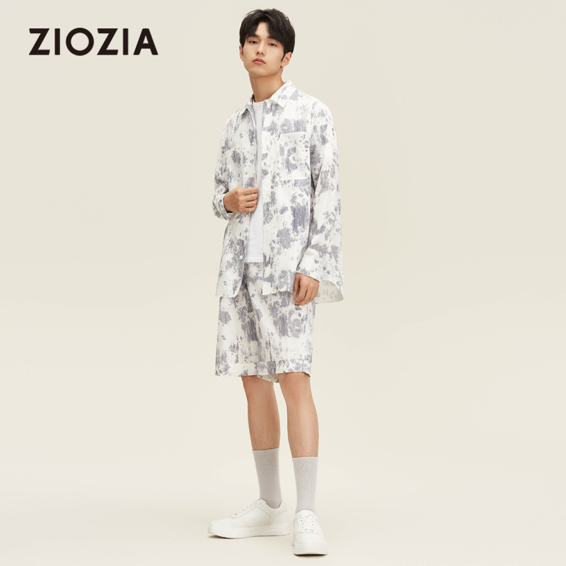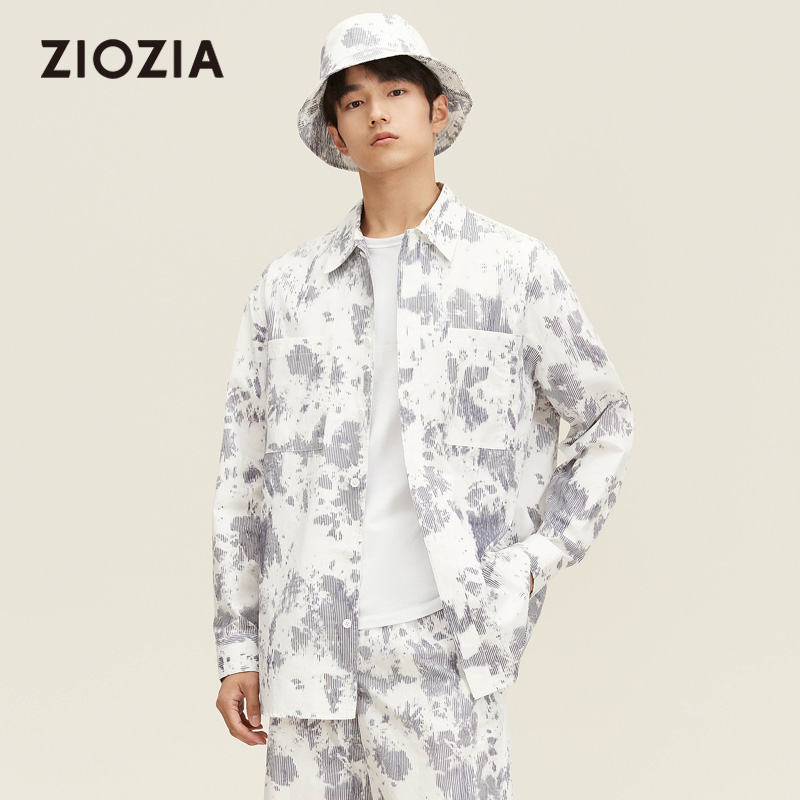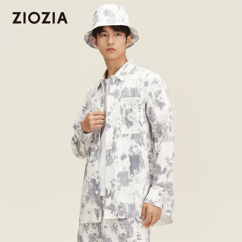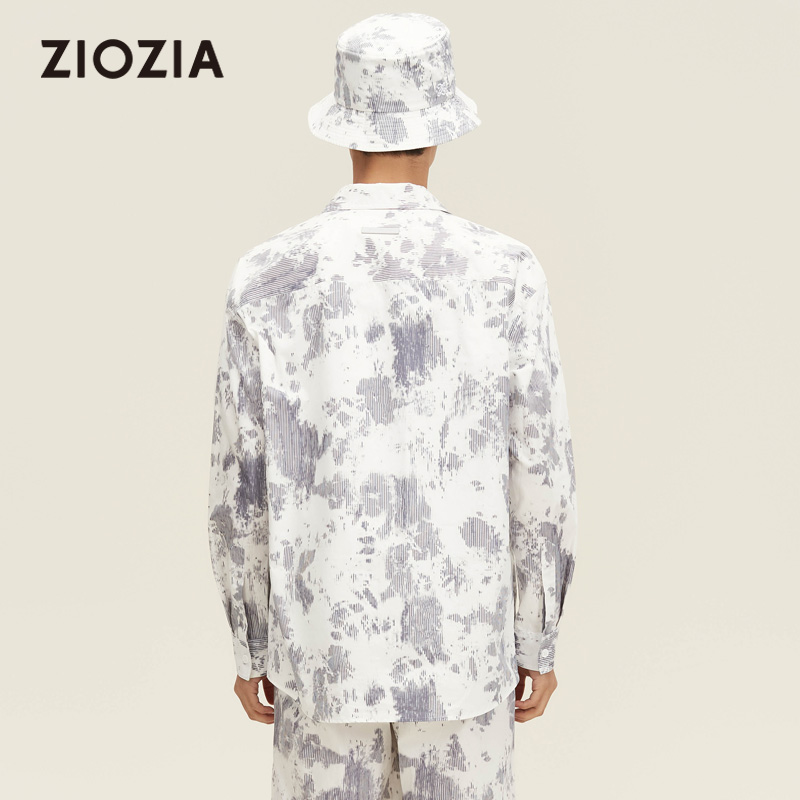 ZIOZIA九牧王旗下男装春季蓝白渐变印花长袖男士衬衫ZWCC1K04A
