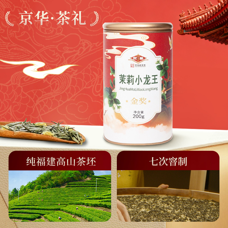 京华茶叶茉莉花茶小龙王中华老字号茗茶 罐装200g