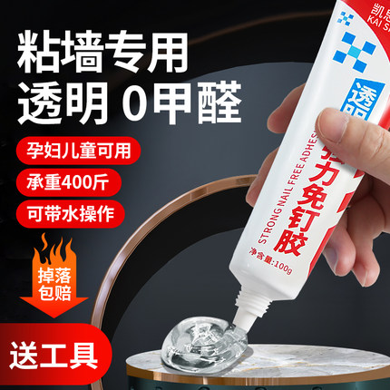 高粘度透明免钉胶贴墙专用粘得牢瓷砖金属置物架镜子挂钩地板密封踢脚线多功能防水家用胶万能强力免打孔胶水