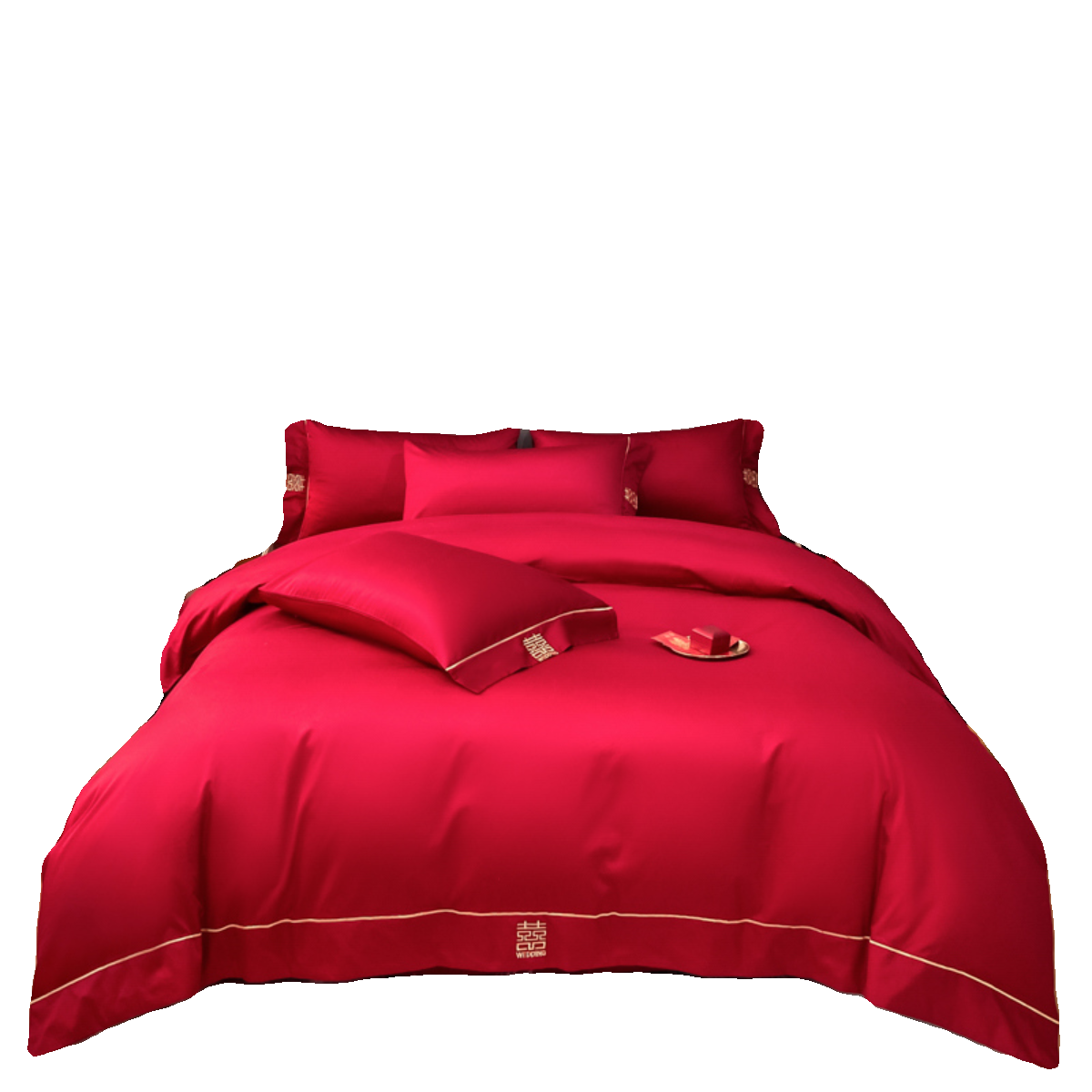 简约婚庆四件套大红色刺绣全棉
