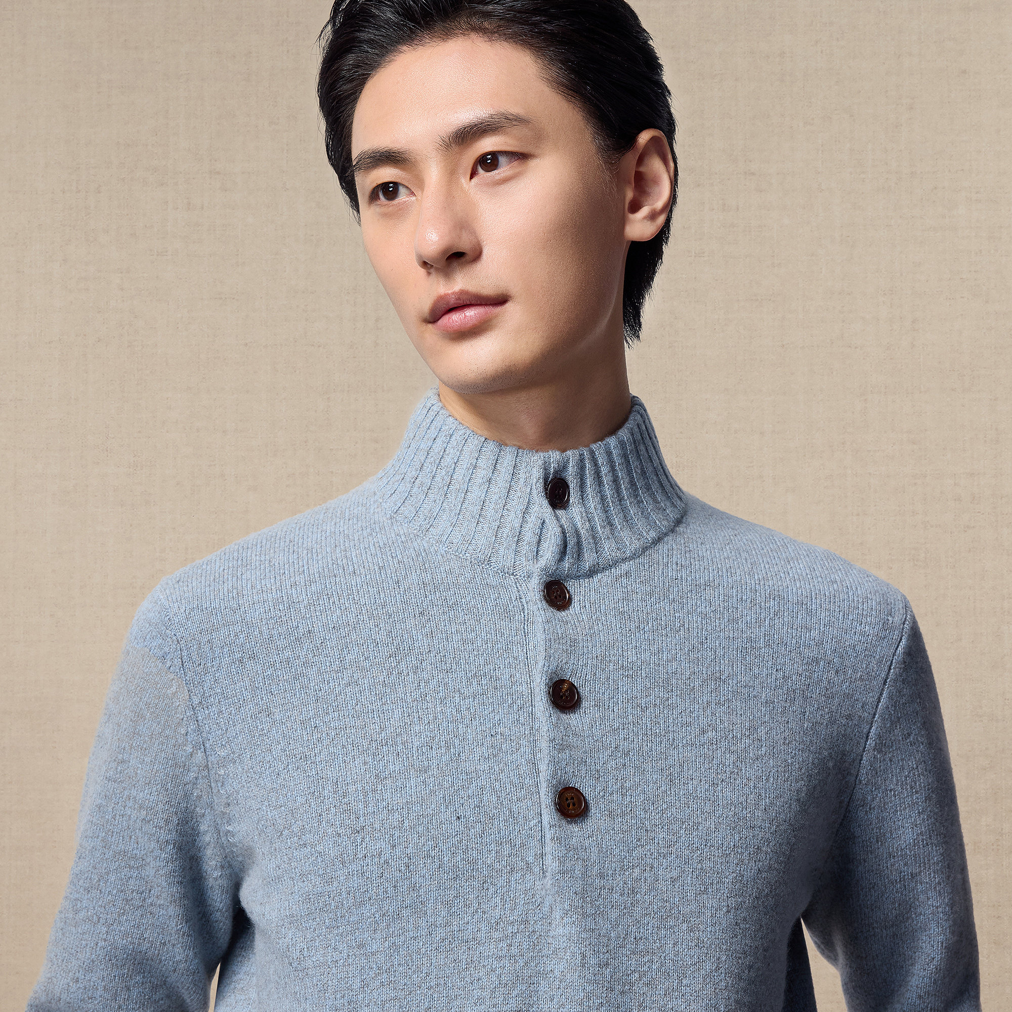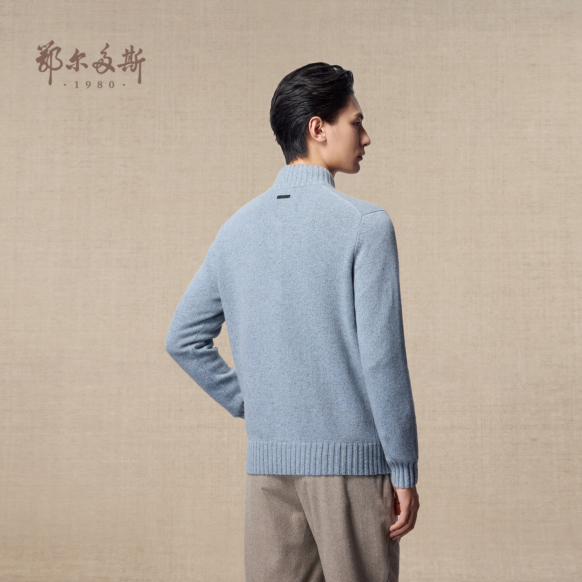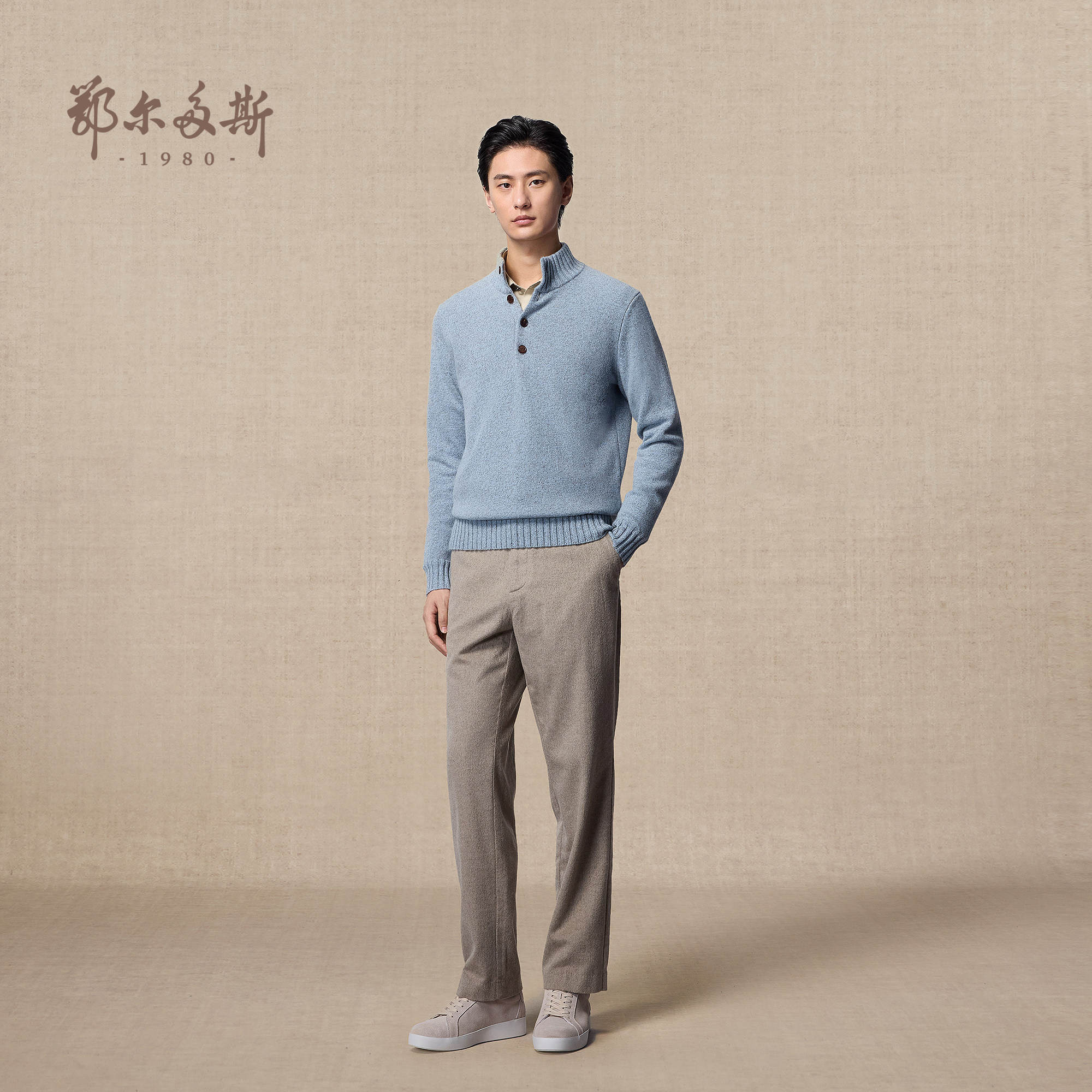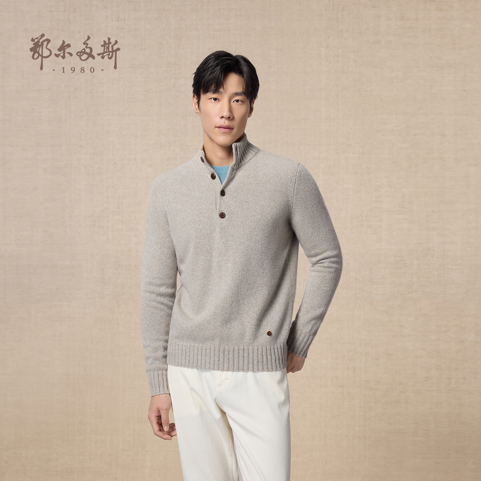 鄂尔多斯1980 男装系扣半高领羊绒衫25年秋冬新品厚款保暖针织衫