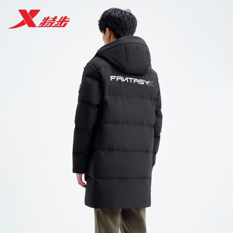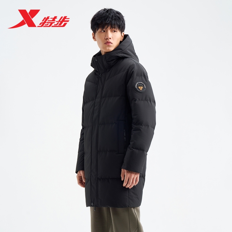 特步中长款羽绒服男士2025冬季新款保暖上衣加厚运动外套男正品