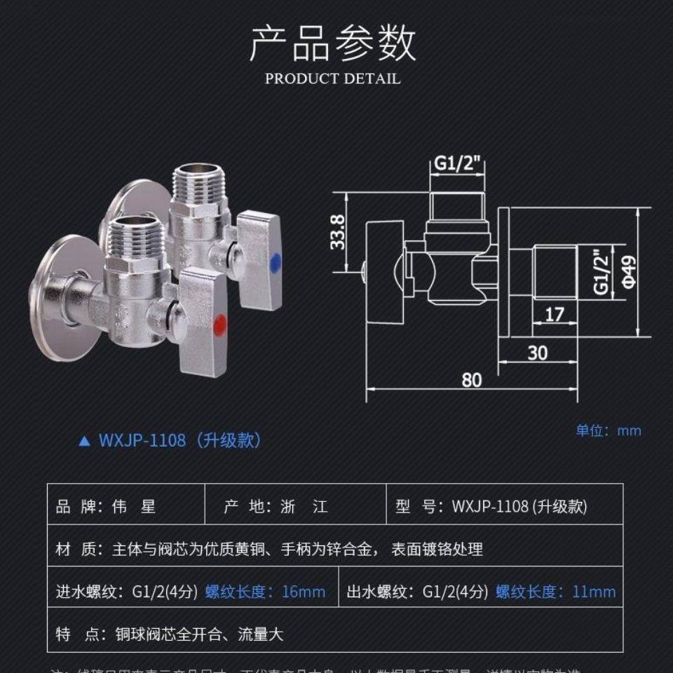 浙江伟星三角阀全铜加厚冷热水通用全铜马桶热水器球芯大流量4分