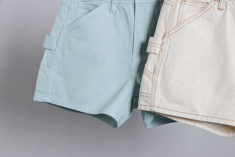 卡其色淡绿休闲工装裤子女高腰显瘦宽松阔腿裤短裤夏季牛仔裤卷边