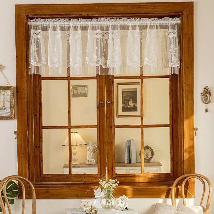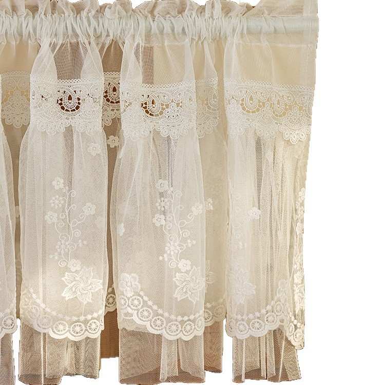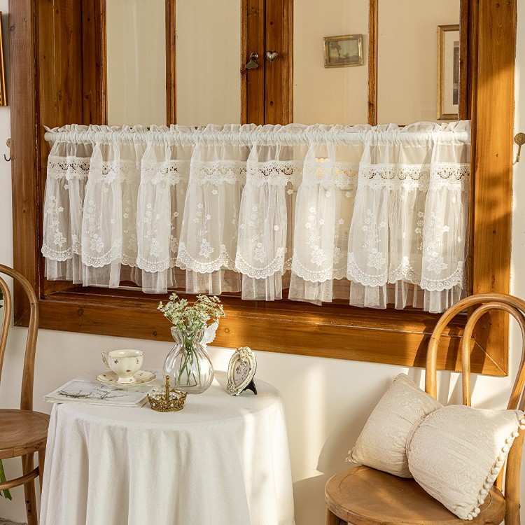 氛围感法式短帘遮挡书柜帘免打孔四季门帘咖啡帘美式飘窗厨房半帘