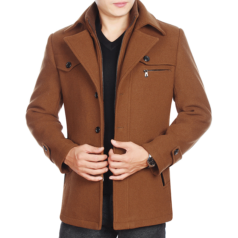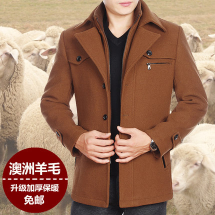 冬季商务加厚中老年人男士夹克羊毛呢外套修身爸爸装短款呢子大衣