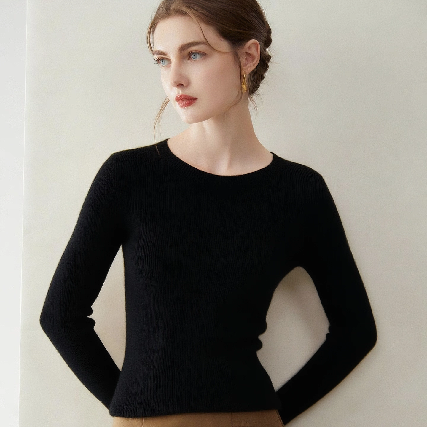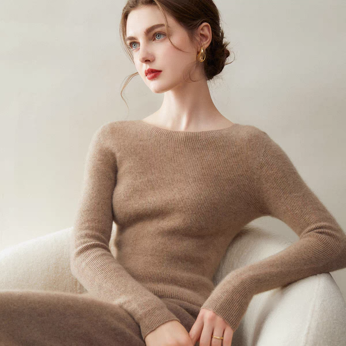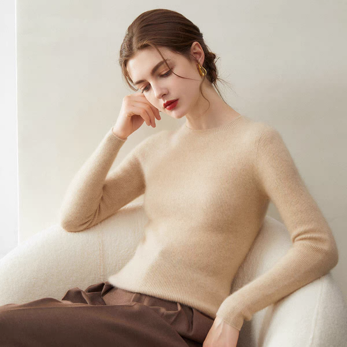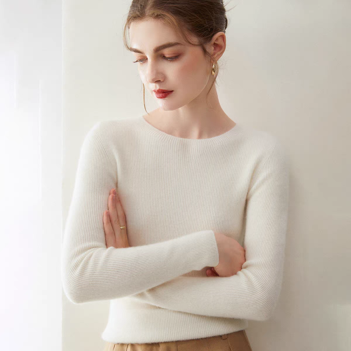 鄂尔多斯市可机洗一线成衣圆领羊毛衫女内搭修身针织羊绒打底衫女