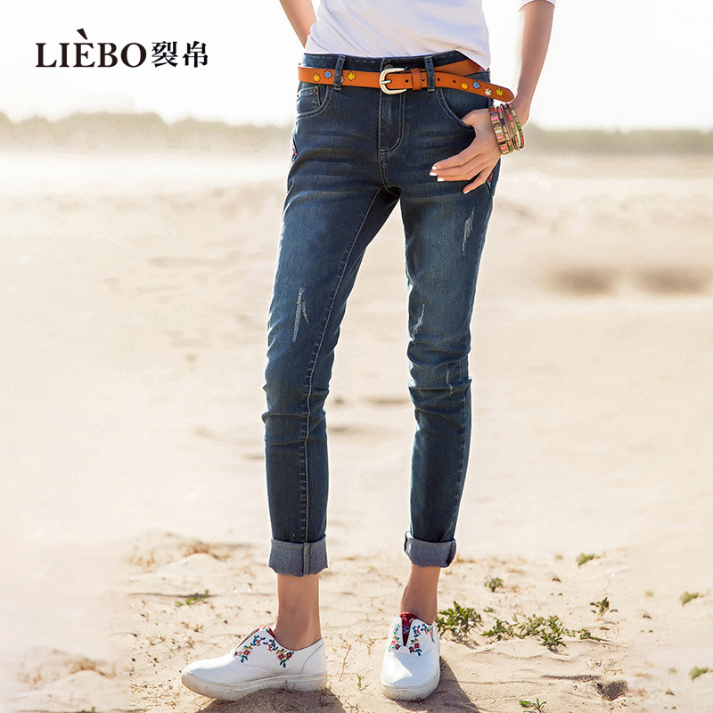 裂帛直筒裤水洗磨白显瘦牛仔裤女