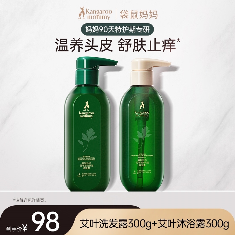 袋鼠妈妈洗发水沐浴露准孕妇可用小麦洗护滋润控油去屑正品护发