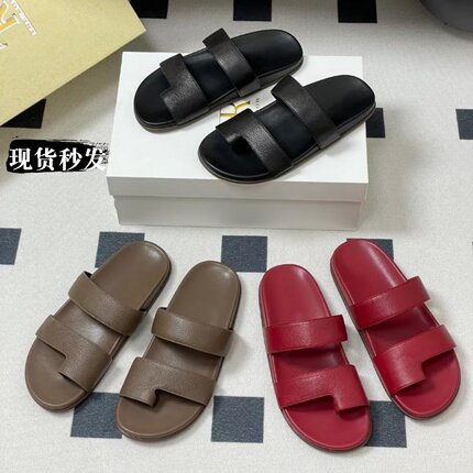 2025夏季row夹脚鞋男女款真皮度假沙滩平底凉拖鞋休闲百搭凉鞋潮