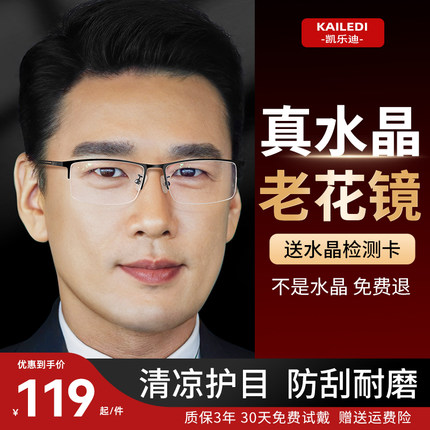 东海真水晶老花眼镜正品男石头高清年轻款高端品牌高档官方旗舰店