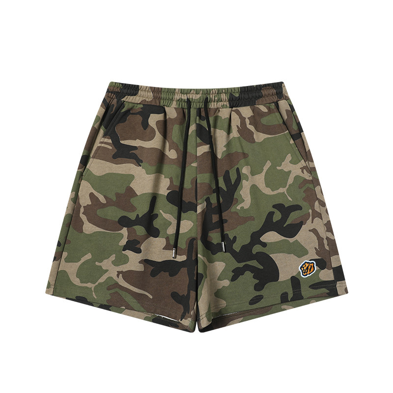 潮牌虎头刺绣迷彩针织短裤五分裤