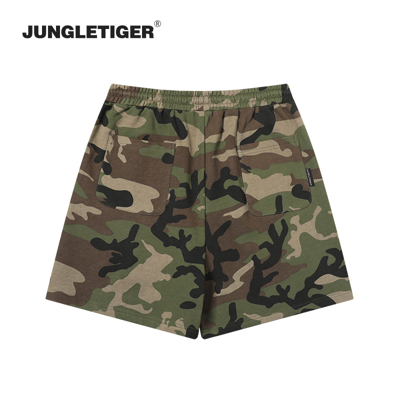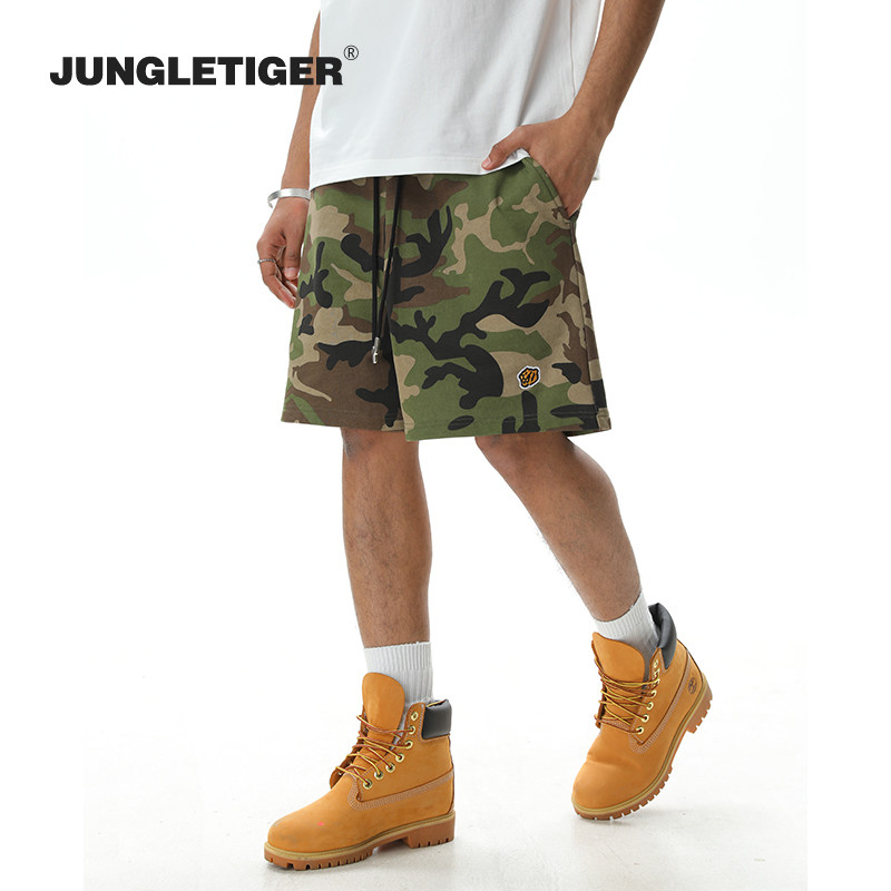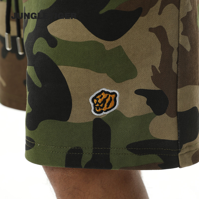 JUNGLETIGER潮牌虎头刺绣迷彩针织短裤男休闲纯棉380g重磅五分裤