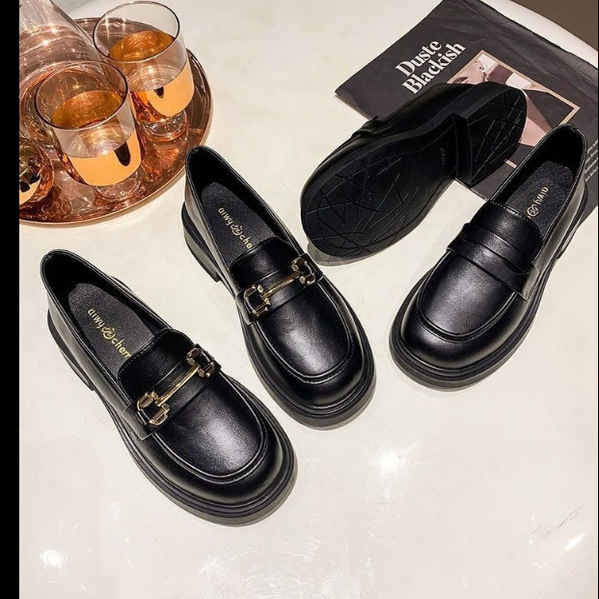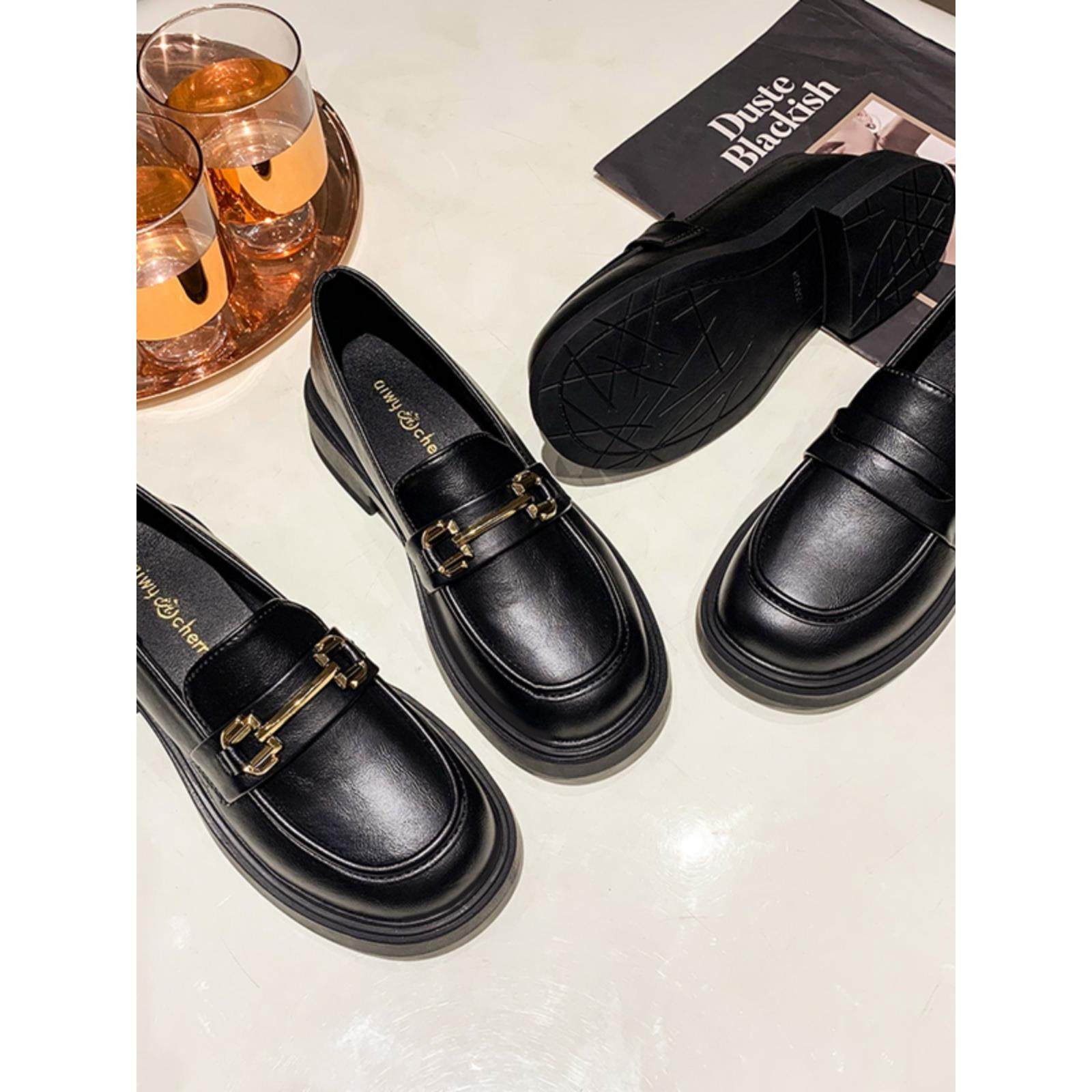 品牌金属搭扣小皮鞋女豆豆鞋2025年新款韩版单鞋子女日系jk乐福鞋
