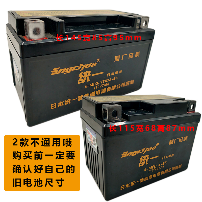 统一免维护摩托车12V蓄电池125/150越野/踏板车/女士摩托车干电瓶