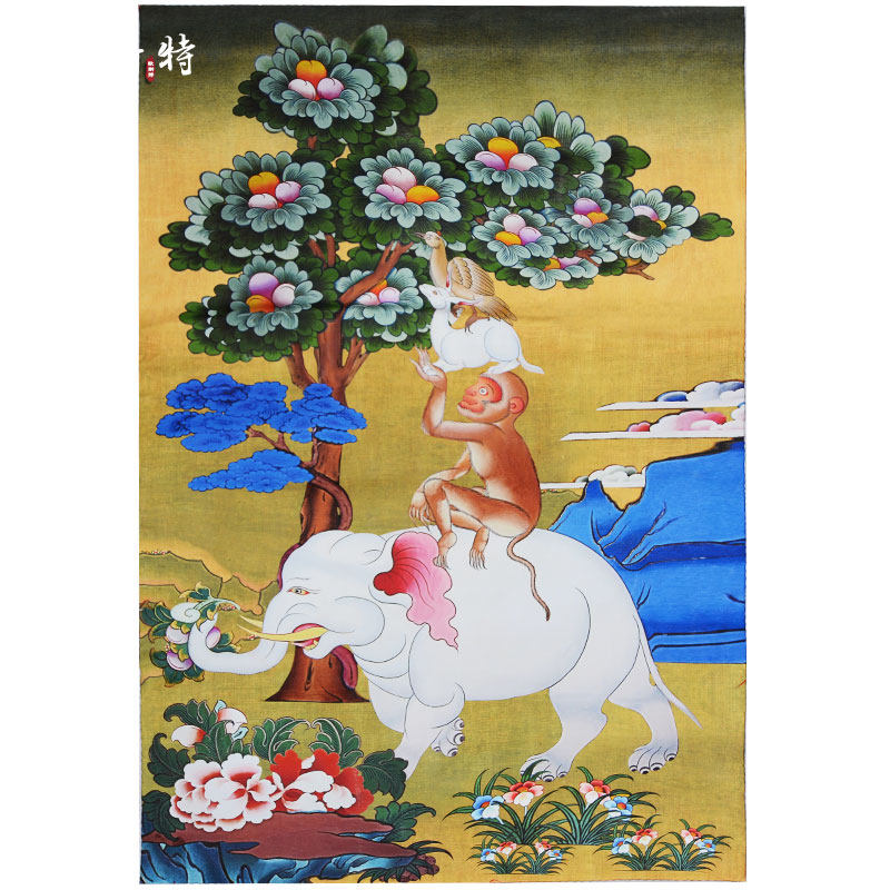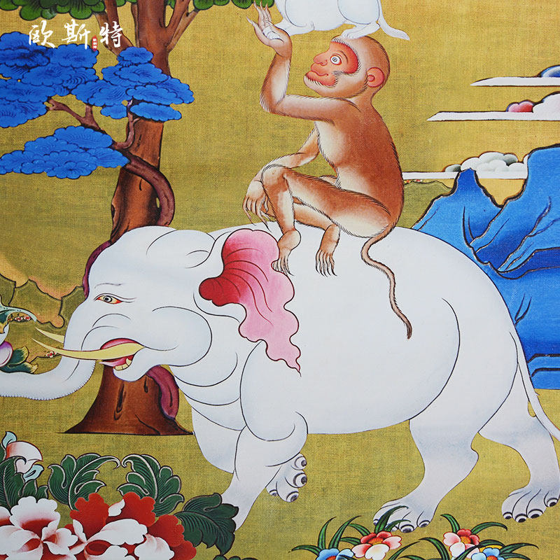 和气四瑞矿物颜料唐卡家用墙壁玄关和睦四瑞装饰挂画 现货