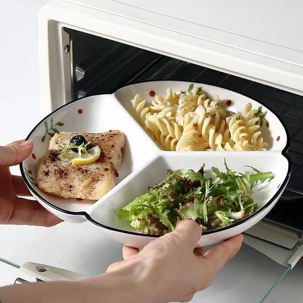 陶瓷分格盘分餐减脂盘餐盘儿童吃饭盘水果盘烤箱专用盘家用早餐盘