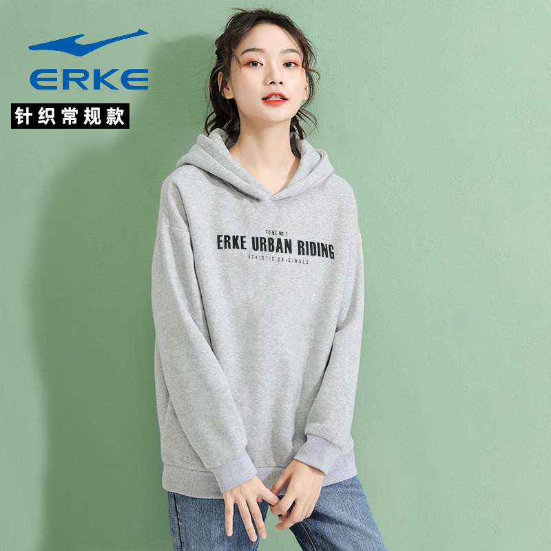 鸿星尔克卫衣外套女士秋季宽松字母连帽运动上衣女款早秋长袖薄款
