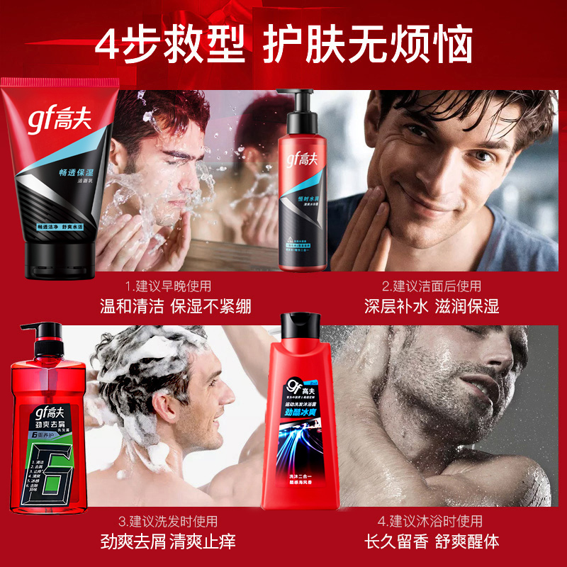 高夫官方旗舰店官网正品男士洗面奶爽肤水乳液洗发水沐浴露套装