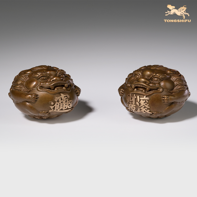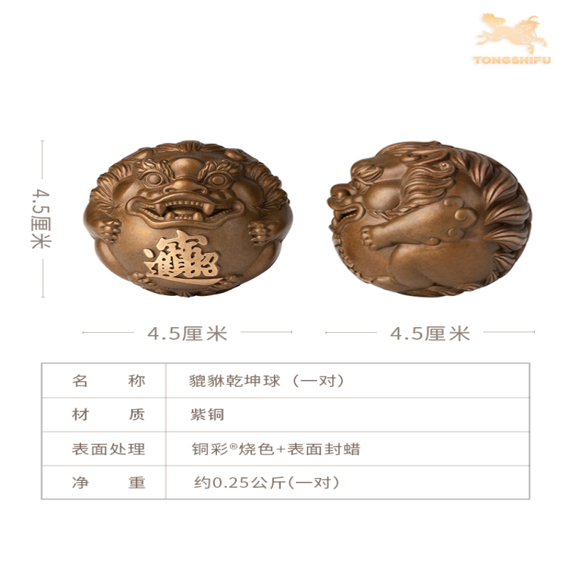 铜师傅 铜摆件《貔貅乾坤球(一对)》紫铜文玩桌面礼品盘玩手把件