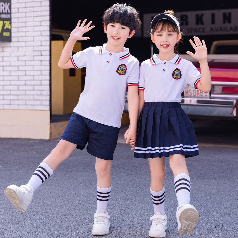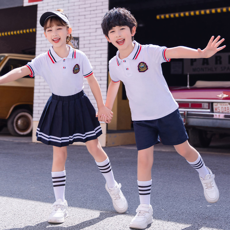 小学生校服夏装短袖套装2024棉班服毕业服白色夏季polo幼儿园园服