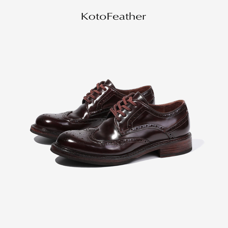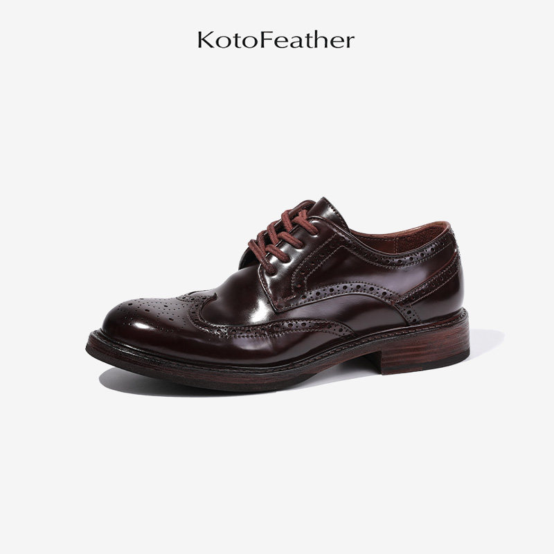 珡羽KotoFeather 英式布洛克雕花德比鞋马臀皮商务正装休闲皮鞋男