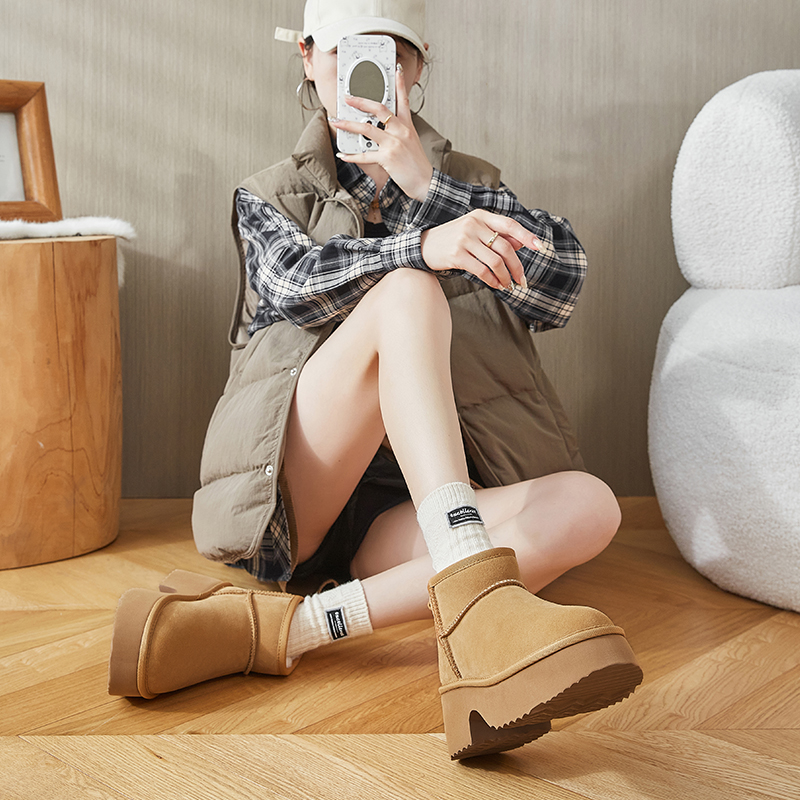 2025秋冬季新款雪地靴女厚底内增高人鱼坡跟加绒加厚短筒保暖棉鞋