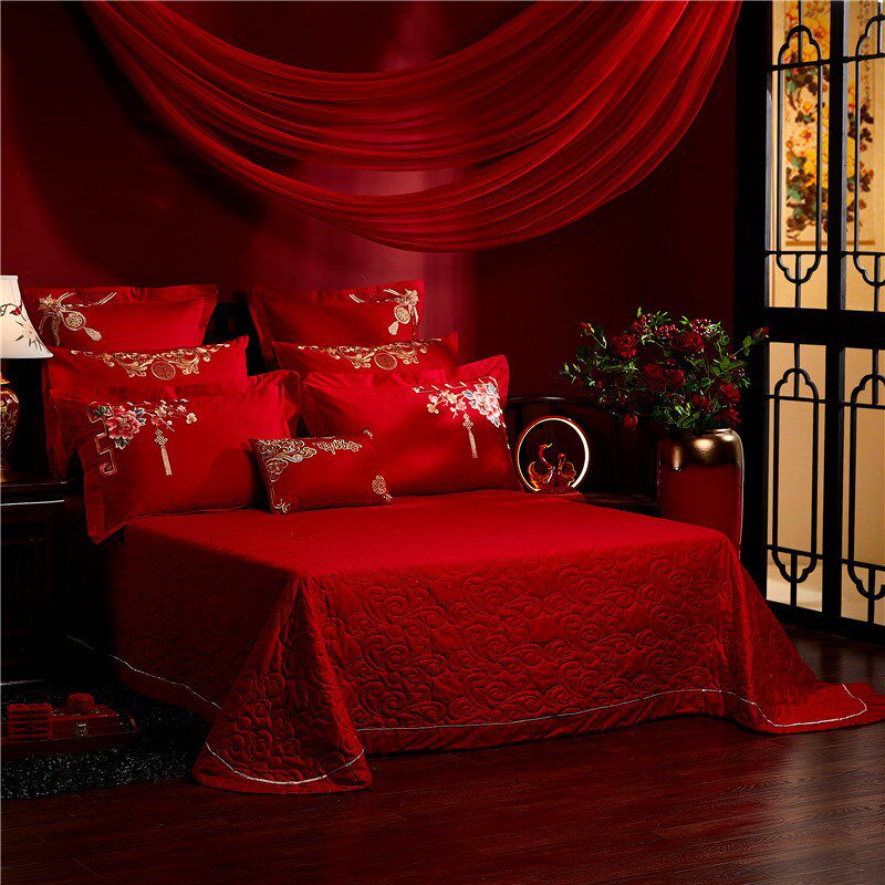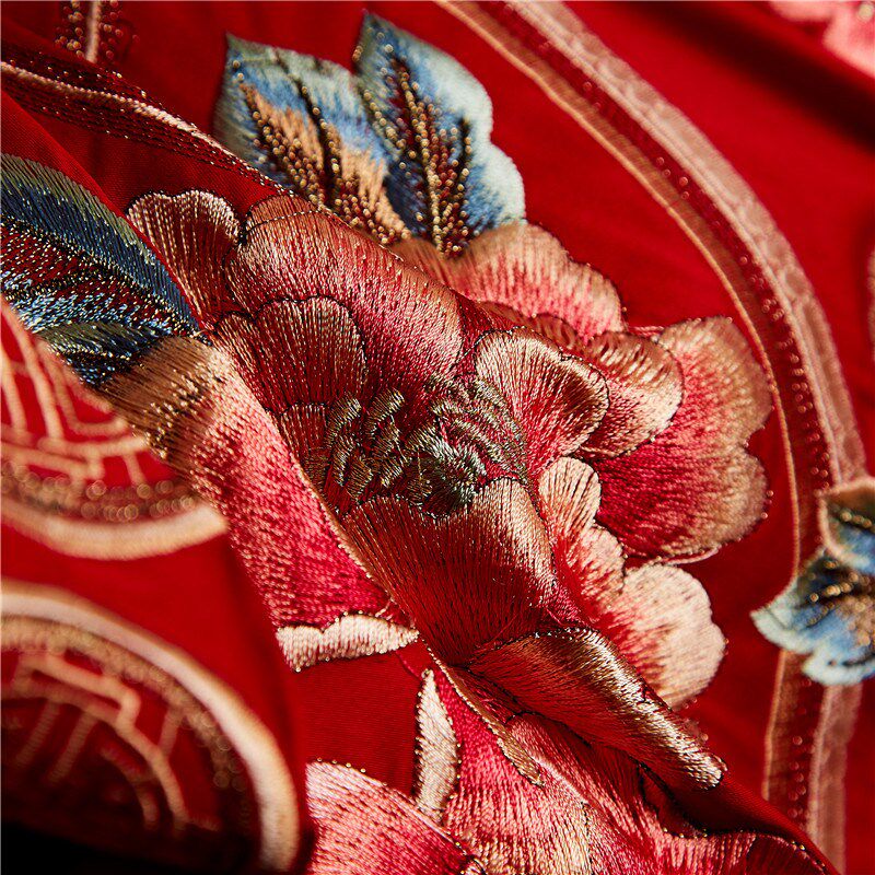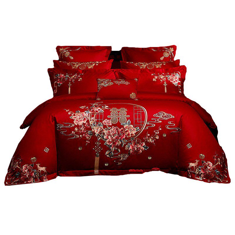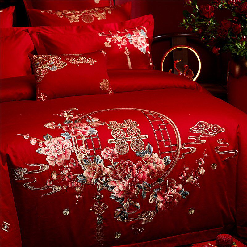 纯棉新中式结婚四件套大红色床单刺绣喜庆被套全棉床上用品陪嫁新