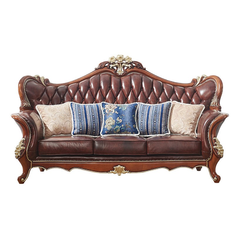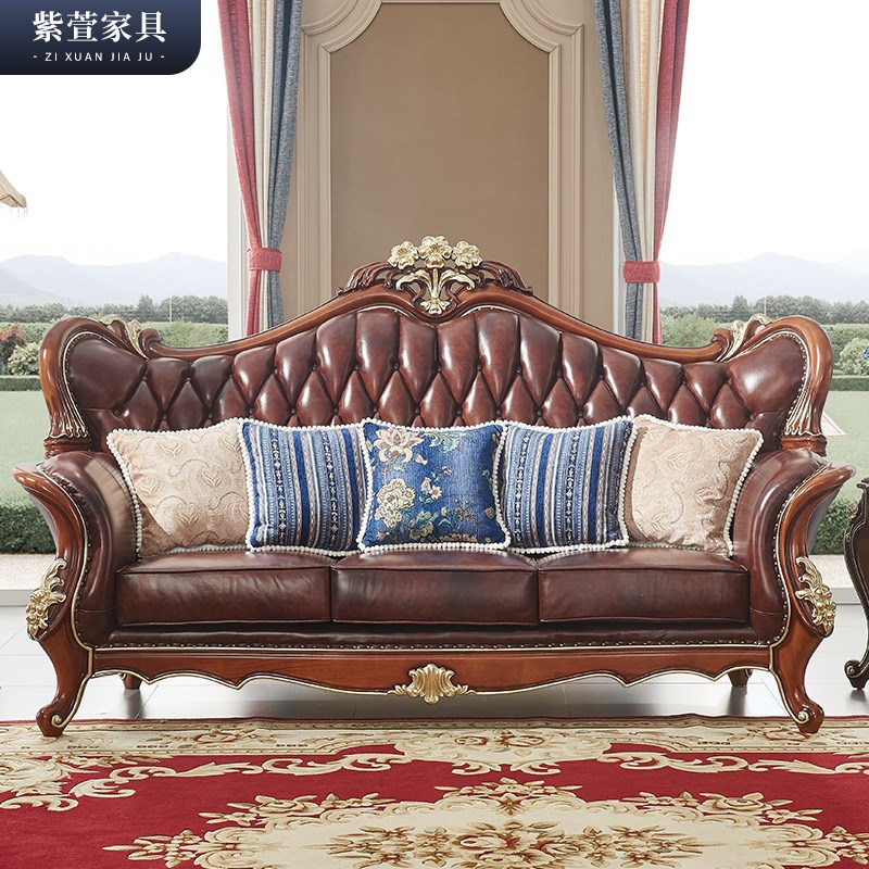 欧式真皮沙发头层牛皮三人位沙发 别墅客厅接待实木沙发组合家具