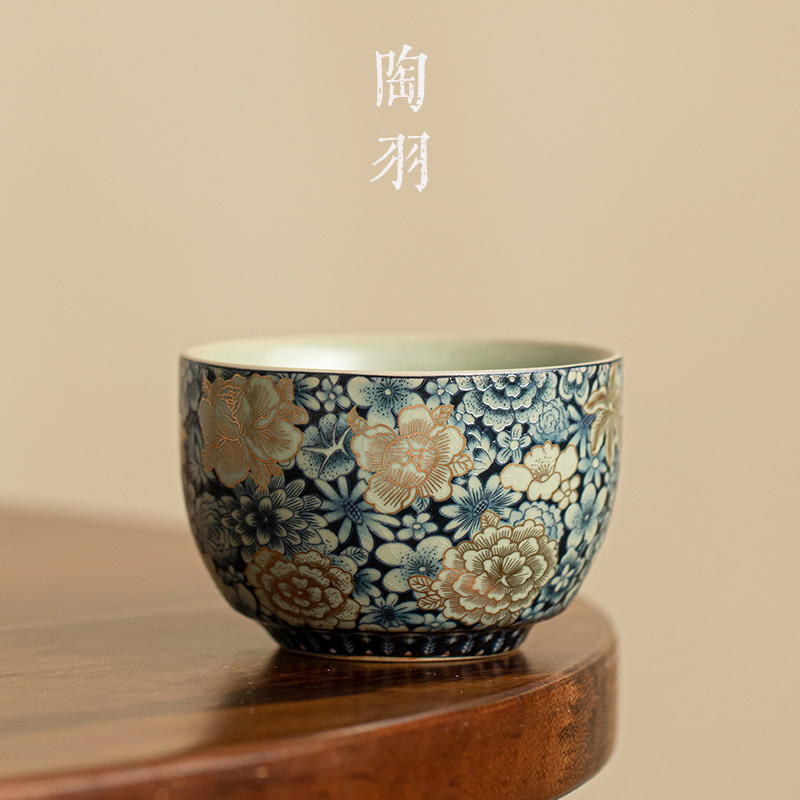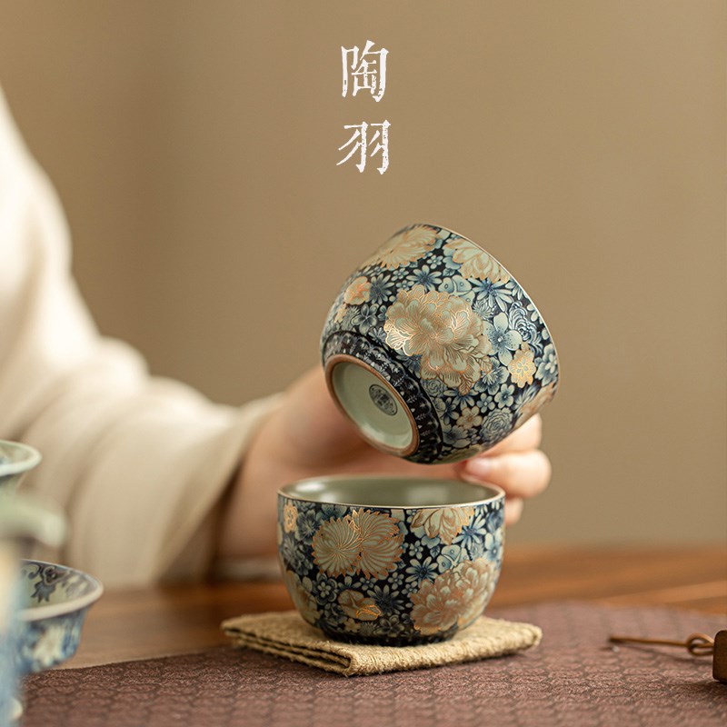 汝窑繁花茶杯茶碗开片可养陶瓷功夫茶具主人杯个人品茗杯单杯