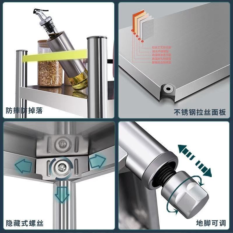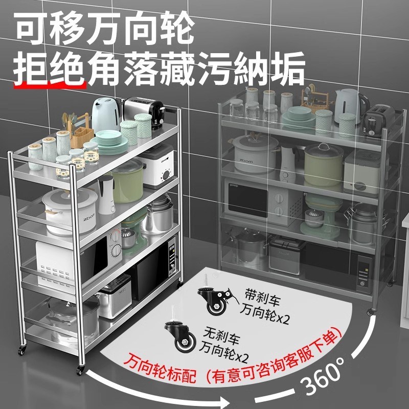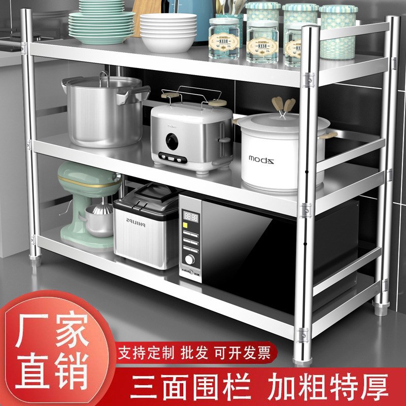 304不锈钢带围栏厨房置物落地多功能多层收纳品微波炉储物货架子