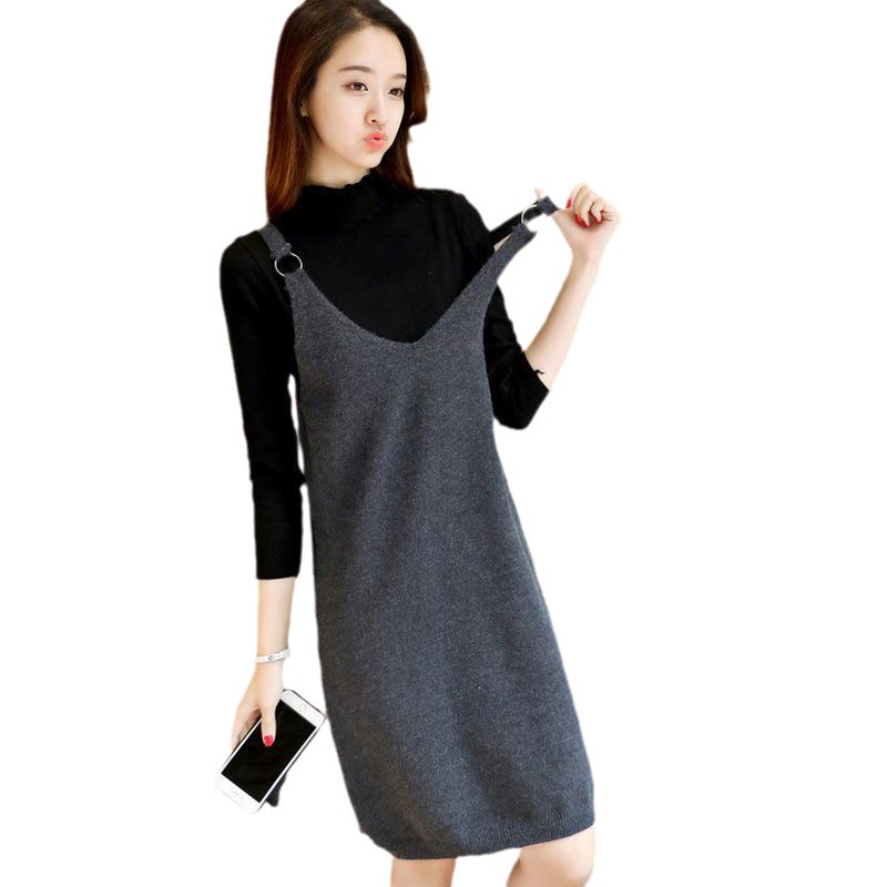 吊带背心连衣裙女春秋新款毛衣裙针织简约宽松中长款背带打底裙子