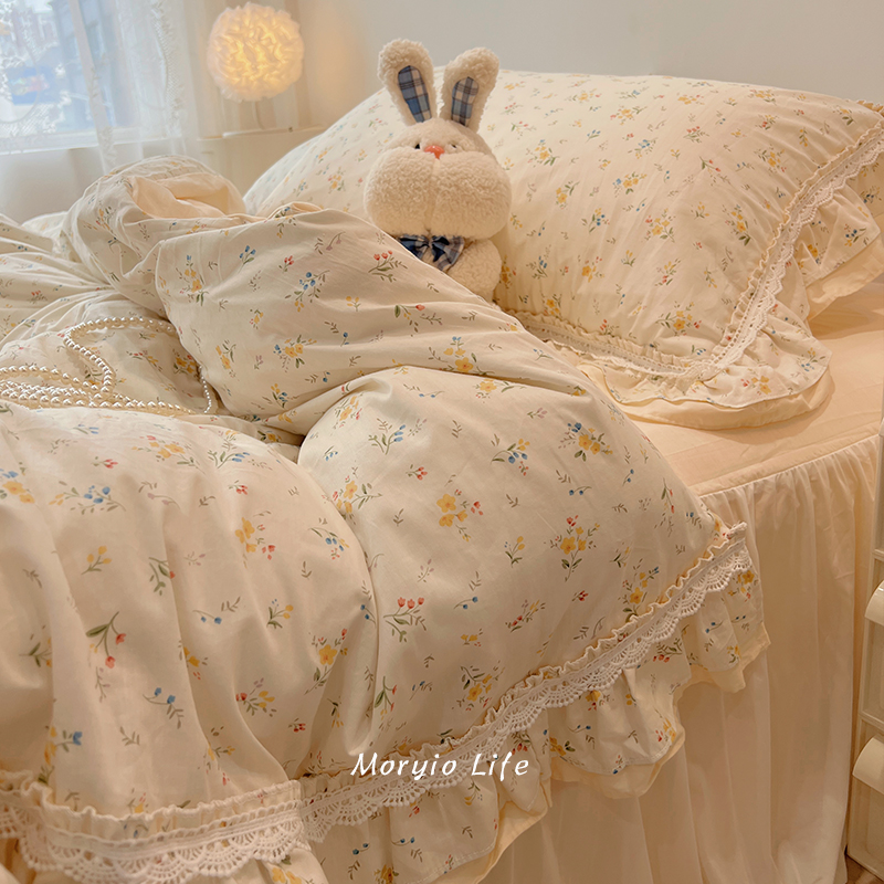 木悠韩式公主风床裙款床上四件套纯棉全棉2024新款被套床单床笠款
