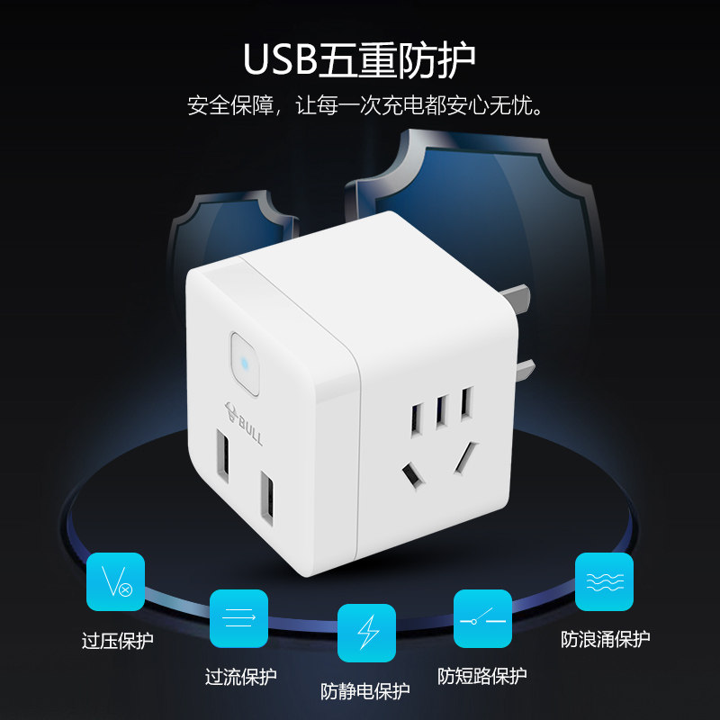公牛插座usb插座充电魔方插排插线板接线板多功能家用电源转换器