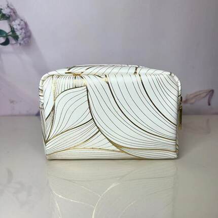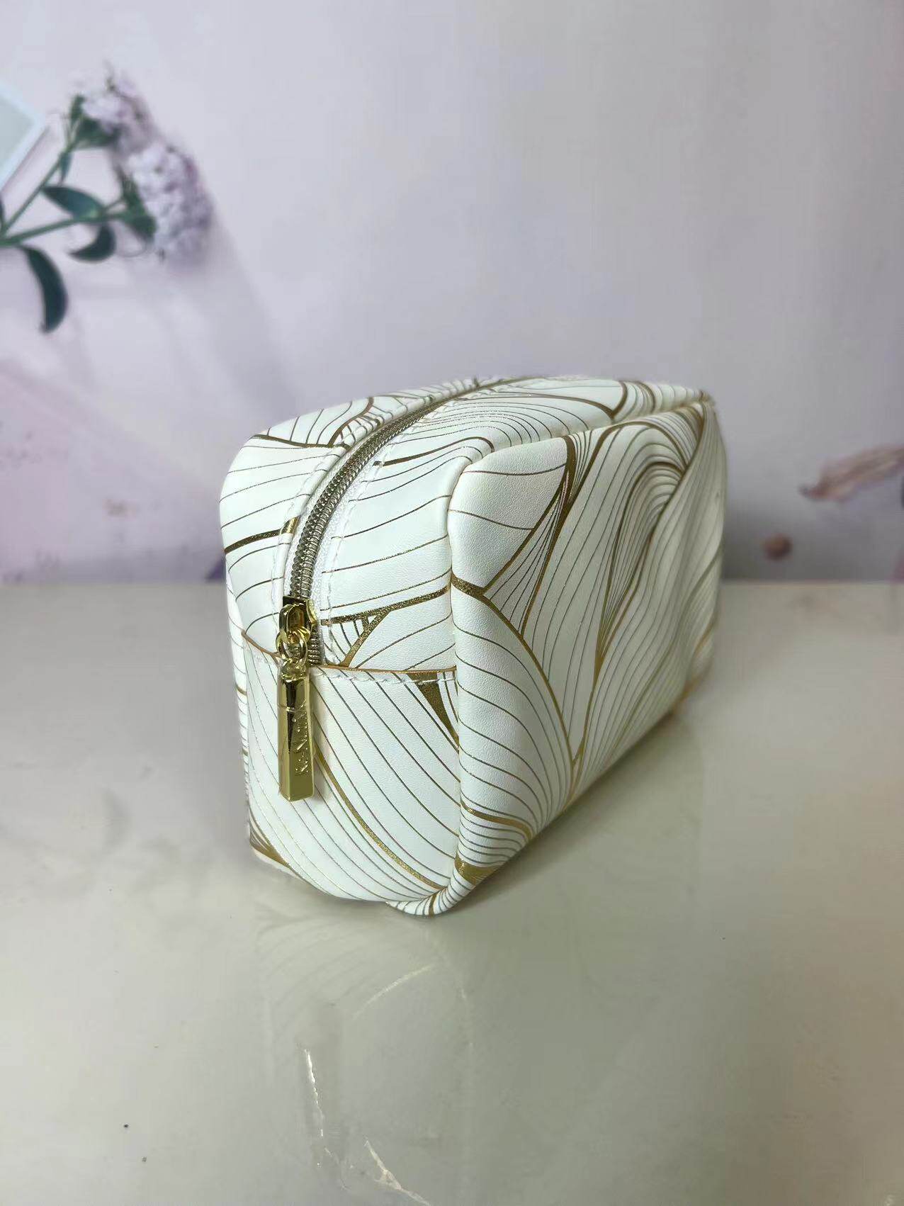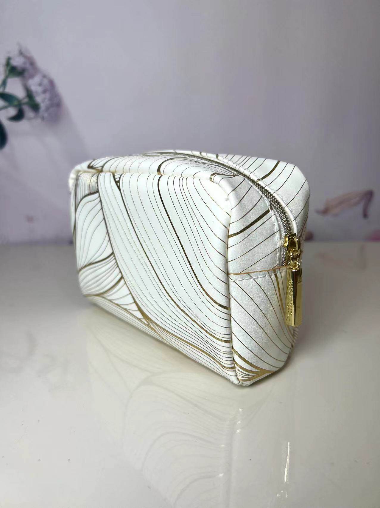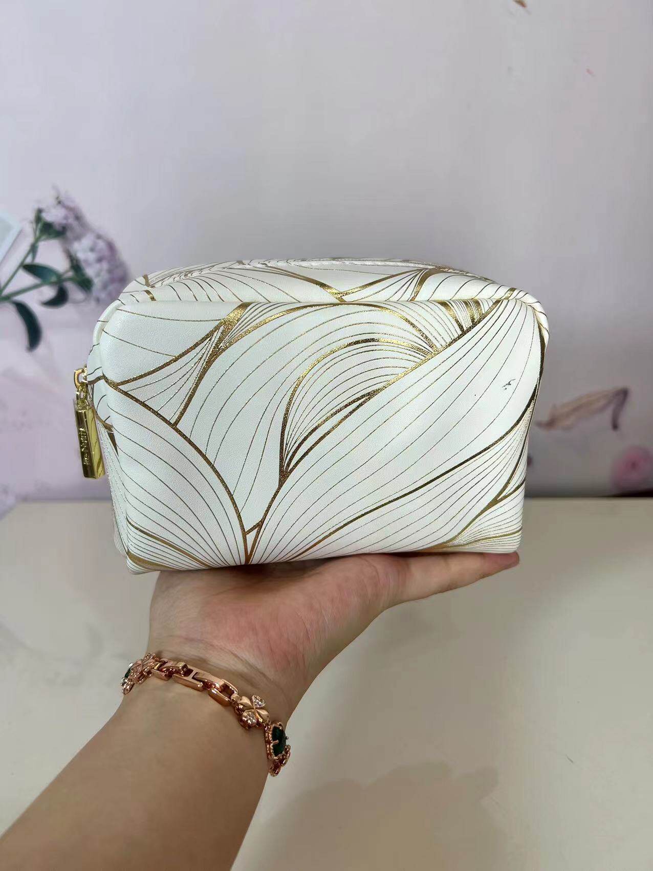 雅诗兰黛专柜赠品白金荷花烫金化妆包收纳包防水PU手拿整理小包