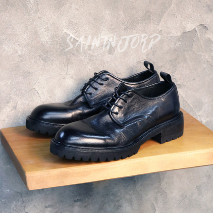 复古水洗大头皮鞋增高厚底德比鞋