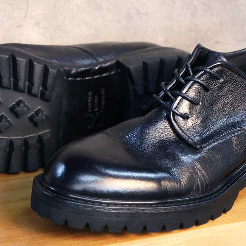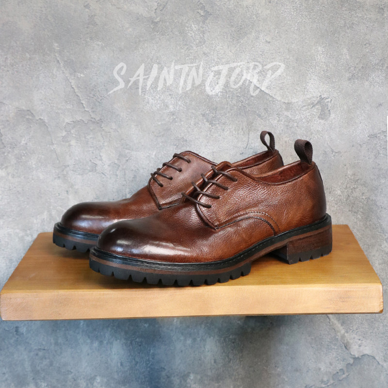 优100复古水洗英伦圆头商务休闲皮鞋男士真皮大头增高厚底德比鞋