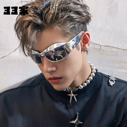 拽酷帅未来潮流眼镜太阳镜装饰异形废土骑行护目凹造型墨镜设计感