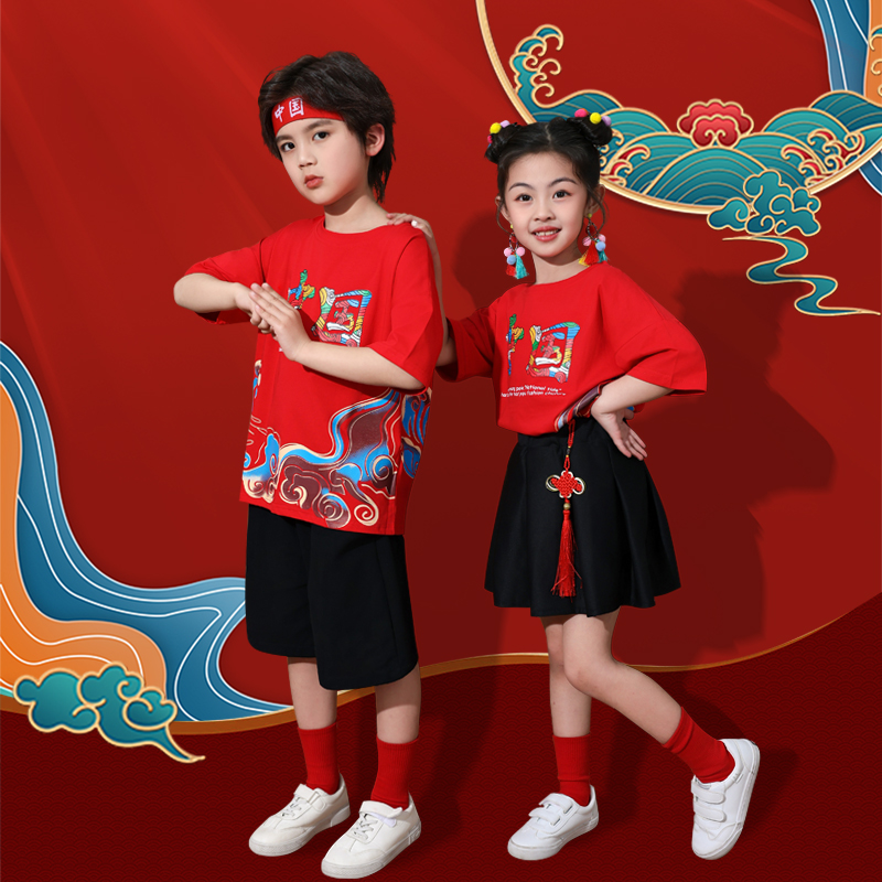 儿童演出服幼儿园园服中国风毕业照班服啦啦队大合唱表演服装夏款