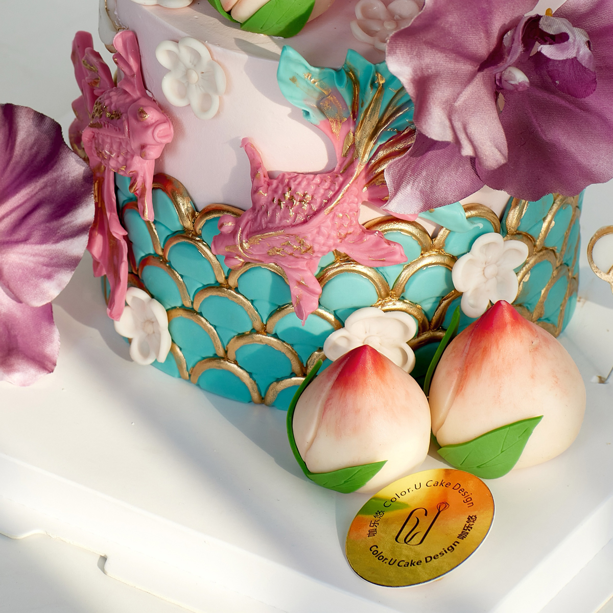 锦绣芳辰国风祝寿寿桃锦鲤妈妈长辈奶奶外婆老师生日蛋糕杭州同城
