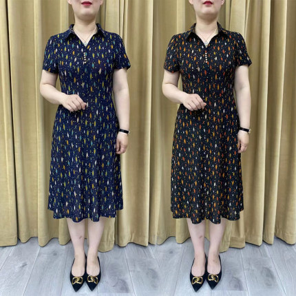 中年妈妈夏装短袖衬衫领连衣裙新款洋气时尚弹力修身显瘦套头裙子